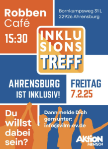 Durch den inklusiven Musik-Treff am 7. Februar 2025 führt Peggy Sunday, die mit einigen Bandkollegen das inklusive Robben Café ab 15 Uhr mit Live-Musik belebt und kräftig unterstützt. Peggy war bereits in vielen integrativen Projekten aktiv, sowohl für Geflüchtete, als auch für Menschen mit jeder Art von Beeinträchtigungen.